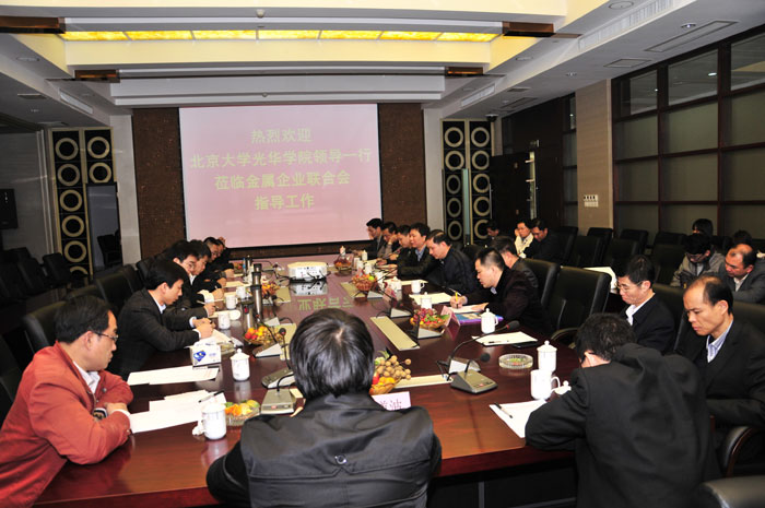 北京大學光華學院領導首先參觀了金屬企業聯合會展廳、金屬企業聯合會辦公場所,觀看揭陽金屬生態城規劃設計圖。隨后召開會議,揭陽市金屬企業聯合會會長吳克東代表金屬企業聯合會對光華學院領導到來表示熱烈歡迎,希望光華學院領導在揭陽調研的這段期間能夠對金屬企業聯合會的建設和揭陽金屬生態城的建設能夠注入智力高能量。