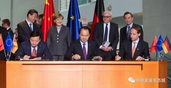 在國家主席習(xí)近平與德國總理默克爾共同見證下,揭陽市中德金屬集團、廣東省廣晟資產(chǎn)經(jīng)營有限公司、德國歐綠保集團三方共建的“中德資源再生基地”項目成功簽約,正式落戶中德金屬生態(tài)城,并于2014年5月31日舉行了中德葉綠寶資源再生基地奠基儀式。