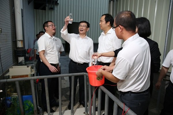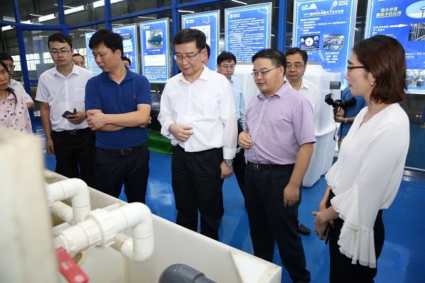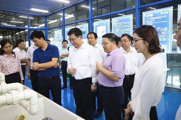 黃副省長一行深入廣東德森環保科技有限公司廠房,考察德森移動式智能生活污水處理設備項目,聽取負責人介紹相關設備及技術后,鼓勵德森環保加大環保技術科研創新,為中國環保事業做一份貢獻!