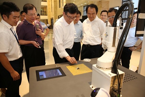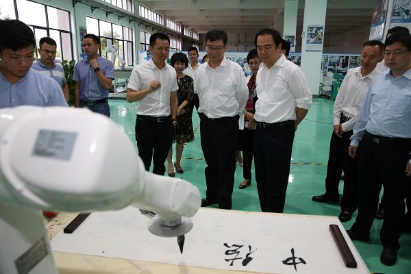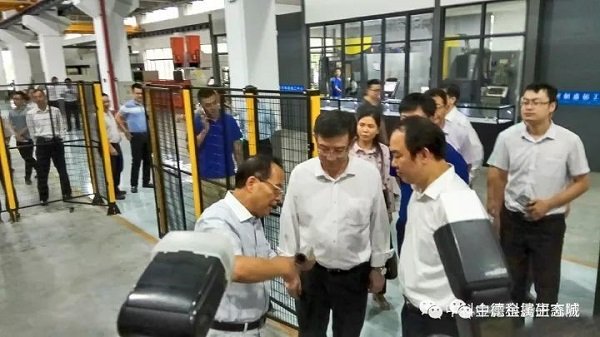在考察中德巨輪智能工業4.0產業基地項目時,黃副省長一行觀看巨輪機器人作業演示,并對巨輪的智能裝備水平表示肯定,鼓勵巨輪不斷提高智能制造技術。