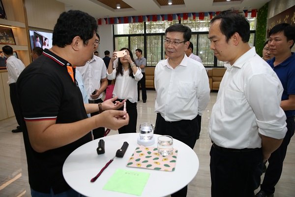 隨后,在中德金屬集團董事長吳克東陪同下,黃副省長一行參觀了四大中心、中科金屬科技研究院,并深入到中德金屬生態城多家入園企業調研,考察捷克多斯塔夫水凈化筆生產基地項目、萬宏光學產品應用項目、駿東電池隔膜項目、德森移動式智能生活污水處理設備項目、中德巨輪智能工業4.0產業基地項目等入園項目,并與企業家進行交流,鼓勵他們要注重科技研發與創新。