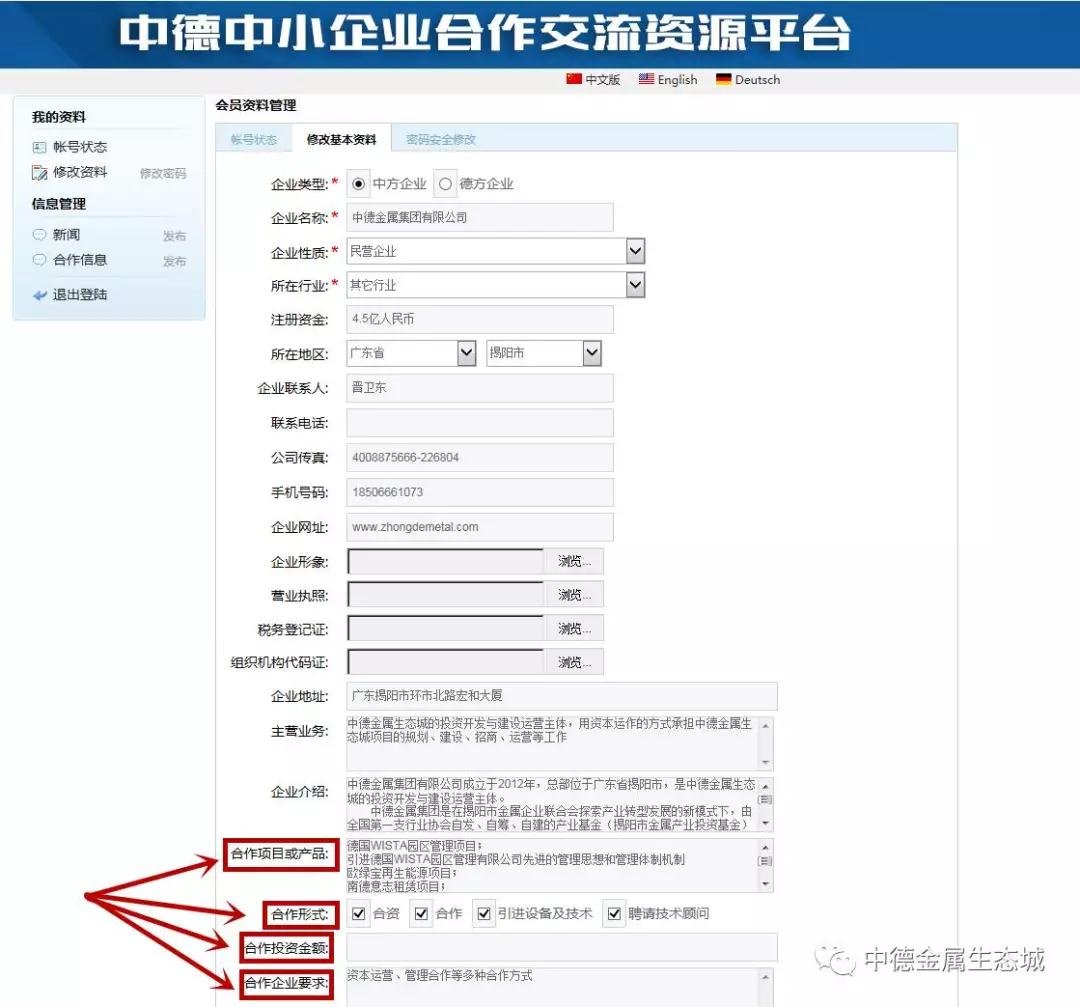 若您未成為我們的會員,可直接注冊成企業會員,然后將您注冊的企業名稱短信通知中德集團招商部,我們會第一時間審核通過您的注冊。