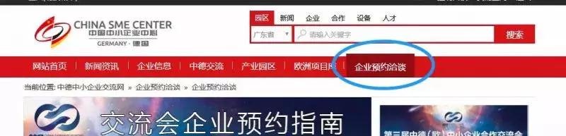 1.點擊網站頁面【企業預約洽談】欄目,如下圖: