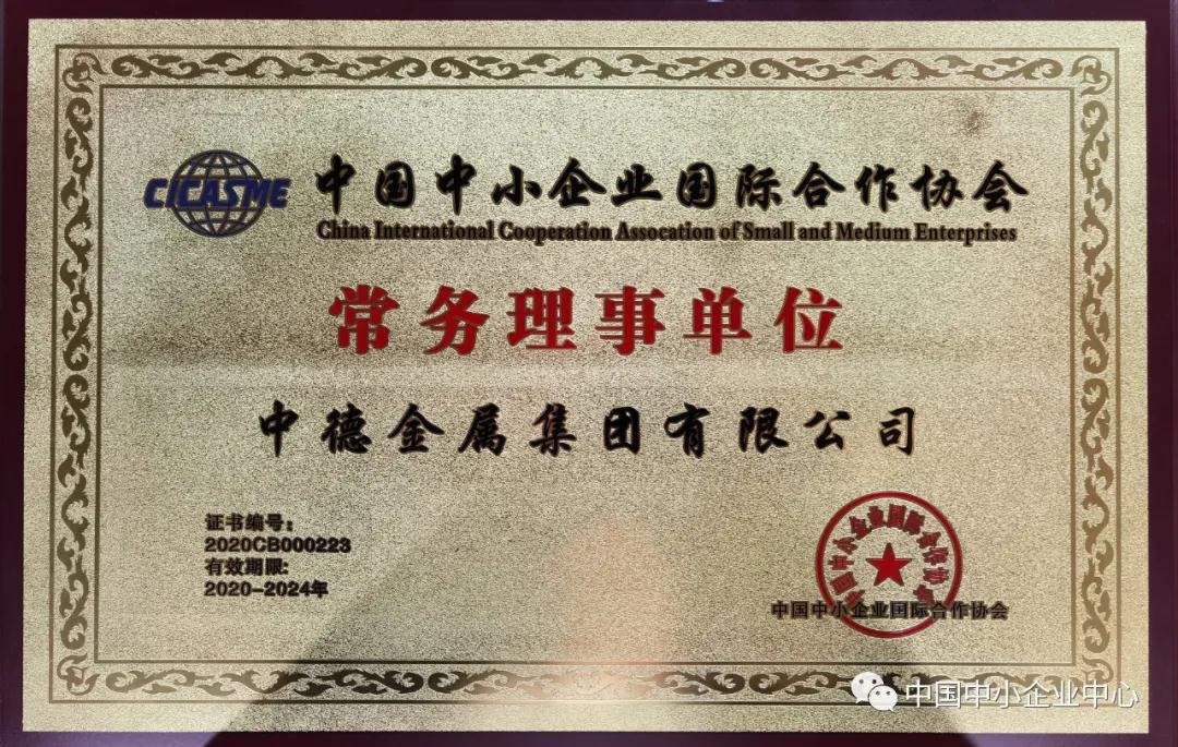 憑借在助推中小企業對外合作和創新發展方面的不懈努力和突出成績,中德金屬集團獲選中國中小企業國際合作協會常務理事單位,這是國家級行業協會對中德金屬集團服務中歐中小企業雙向合作工作的高度認可,也是對集團在中小企業創新發展工作中突出貢獻的充分肯定,意味著中德金屬集團將更好地為國內中小企業提供更大的合作平臺和海內外資源。