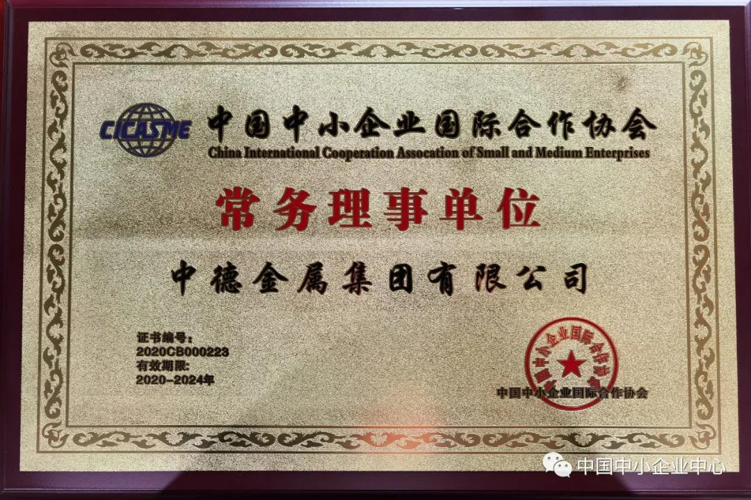 征程萬里風正勁,重任千鈞再揚鞭。中德金屬集團始終不忘初心,大力倡導對外開放合作、資源互聯互通,持續提升品牌效應和業務能力,與國內外政商界進行聯合創新,促進經貿合作。本次入選理事單位充分體現了中國中小企業國際合作協會對我司的認可。中德金屬集團將忠實履行常務理事單位的義務與責任,加強與中小企業的緊密交流與溝通,投入更多的國內外資源,努力推進中國中小企業的蓬勃發展,經濟騰飛。