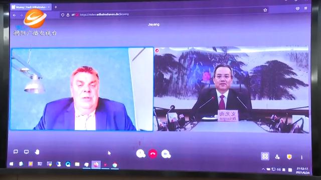 6月24日晚,揭陽市市長支光南與德國下薩克森州威廉港市市長卡斯騰•菲斯特舉行視頻會議,就兩市友好交流和務實合作深入交換意見。市有關部門及中國中小企業中心(德國)相關負責人參加會議。