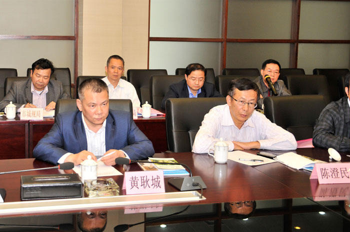 調研組首先到達中德金屬生態城項目建設現場,副市長陳澄民向調研組介紹了中德金屬生態城項目總體規劃的思路以及項目建設進度。隨后,調研組與揭陽市相關單位在揭陽市金屬企業聯合會召開座談會,雙方還特別就中德金屬生態城建設過程中的排污、治污等問題展開了深入研討。