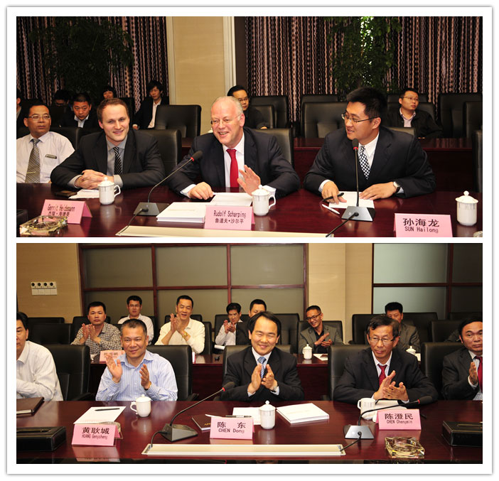 揭陽市委書記陳綠平、市長陳東分別對魯道夫·沙爾平先生一行再次蒞揭表示歡迎,稱贊此次沙爾平先生再次率領精英團隊訪揭,共同商討雙方合作的具體事宜,充分體現了沙爾平先生與揭陽的深厚友誼和對雙方合作的高度重視。