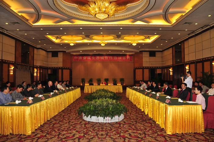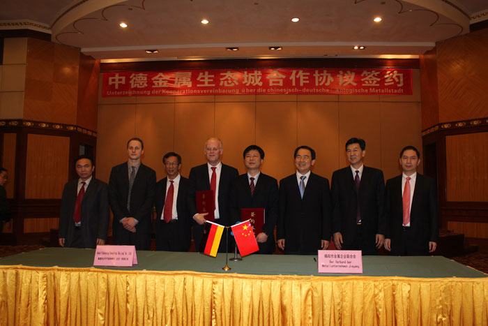 2013年4月27日,德國前國防部長、社民黨前主席魯道夫·沙爾平先生一行再次蒞臨揭陽市金屬企業聯合會訪問,并與聯合會正式簽訂中德金屬生態城合作協議。市領導陳綠平、陳東、黃耿城、陳澄民、陳定雄等與揭陽金屬企業家代表共同出席有關活動。
