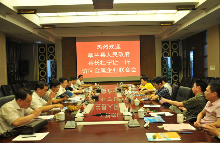 在陳東市長攜揭陽代表團(tuán)赴甘肅皋蘭縣調(diào)研并簽訂合作意向書一周之后,2013年7月15日,皋蘭縣縣長杜寧讓一行在市政協(xié)副主席陳定雄、市政府副秘書長林興國等的陪同下參觀考察了揭陽市金屬企業(yè)聯(lián)合會。揭陽市金屬企業(yè)聯(lián)合會會長吳克東、執(zhí)行會長林眾偉陪同參觀。