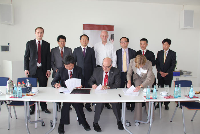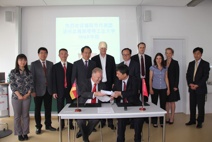 揭陽市金屬企業聯合會吳克東會長與達姆施塔特應用科技大學校長Stengler教授簽訂職業教育合作框架協議