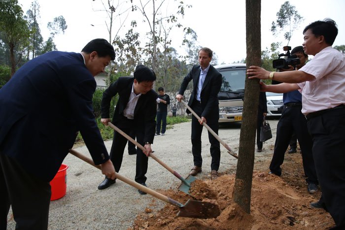 陳定雄副市長、史偉浩、中德金屬集團總裁在中德金屬生態城萬畝森林公園植樹