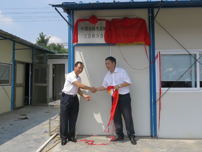 儀式上,市委副書記、市社工委主任謝峻,市總工會副巡視員吳兆全為中德金屬生態城工聯會揭牌;市人大常委會副主任、總工會主席黃水利,市人大常委會副主任、揭東區委書記吳平河,宏和集團總經理吳克新,公司工會主席黃深源共同為中德金屬集團有限公司工委會揭牌。