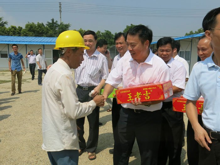 市、區有關領導向工地職工送上王老吉等解暑飲品