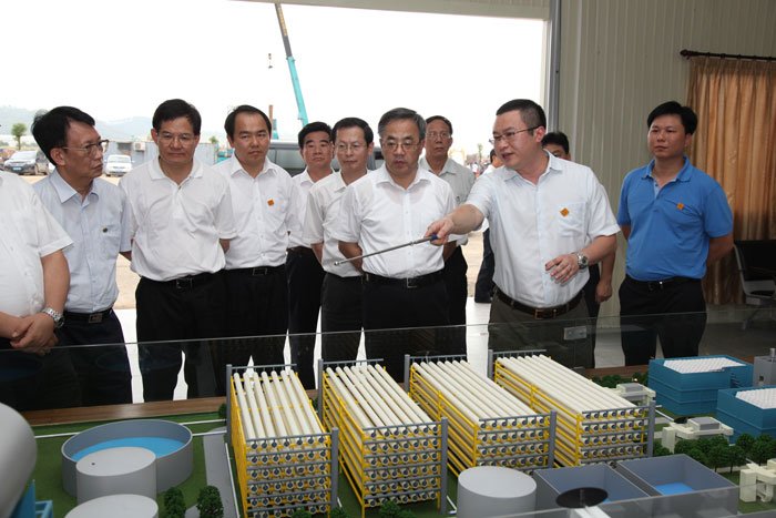 胡春華一行參觀表面處理中心項(xiàng)目展廳,聽取污水“零排放”技術(shù)介紹