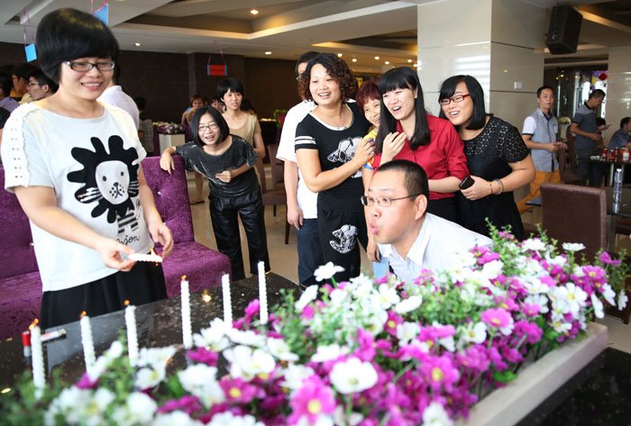 “吹蠟燭”游戲中,到場領導一鼓作氣,秒速吹滅火焰