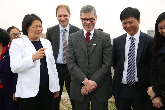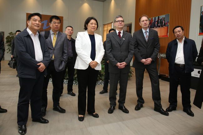 2015年3月3日,德國埃斯林根應(yīng)用科技大學(xué)副校長查耐爾斯基和博克曼一行蒞揭考察中德金屬生態(tài)城及中德雙元應(yīng)用科技大學(xué)選址,共同商討推進合作辦學(xué)事宜。市委書記、市人大常委會主任嚴植嬋等陪同活動。