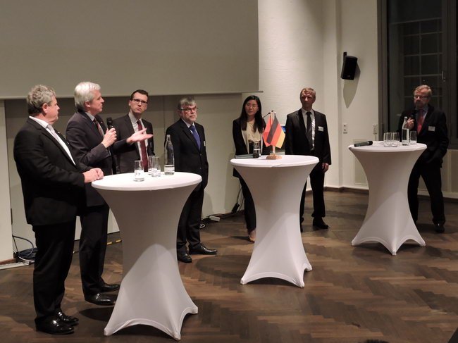 中國文化中心的表演團隊給到場的中德友人帶來了精彩的舞蹈,閃亮拉開了新年活動的帷幕。活動由維斯塔管理公司哈迪·史密斯(Hardy Schmitz)主持。中德金屬集團駐德負責人通過PPT的形式,現場展示了中德金屬生態城令人振奮的發展規模及其與德合作成果,呈現了園區發展的無限魅力和活力。隨后,德國艾薩醫療技術有限公司總經理邵愛民介紹公司在中德金屬生態城的成功投資經驗,贏得在場企業家的熱烈響應,企業家紛紛表達了對中德金屬生態城濃厚的合作興趣。此外,其他嘉賓還分享了在中國的業務拓展經驗和知識產權保護等有關內容。活動交流活躍,氣氛熱烈,人民日報、歐洲新報等媒體紛紛到場采訪報道。