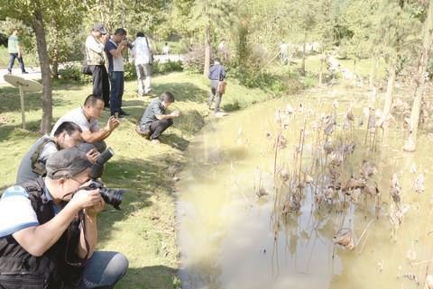 文藝工作者用手中的筆和照相機記錄下中德金屬生態(tài)城建設成就。盧澤鴻 攝